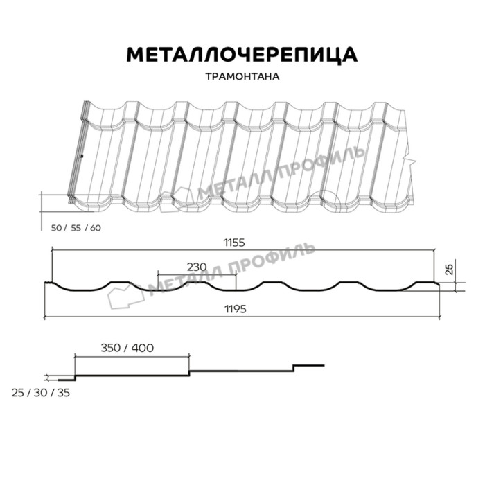 Металлочерепица Металл-Профиль Трамонтана-X 0,5 NormanMP RAL 7024 Серый графит